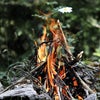 The most efficient way to get a fire started is to fluff up your brillo pad and lay a fresh nine-volt battery on top of it. “You’re shorting out the arc between the positive and the negative sides of the battery terminal,” Hawke says. “On the nine-volt, the distance between them is so small that the metal from the brillo pad heats up.”