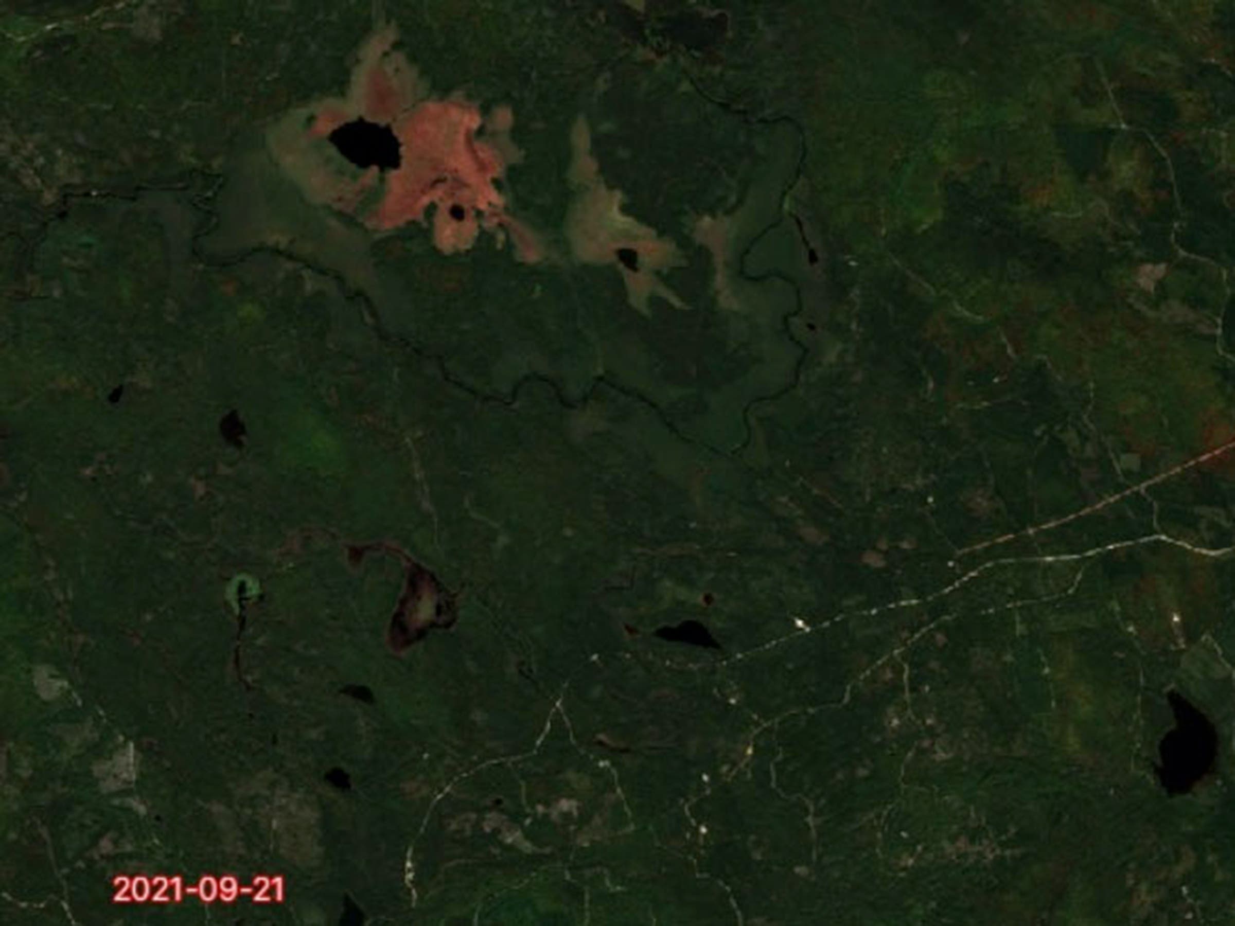 The images provided by the two satellites have a lower resolution than those from Gaia’s normal satellite imagery—approximately 10 to 15 meters per pixel. So you won’t be able to zoom in to see minute details like road surface or individual clumps of trees. But the images will clearly show swaths of yellow, orange, and brown on the screen. For even higher quality sat imagery, check out Gaia GPS’s Satellite Imagery map.