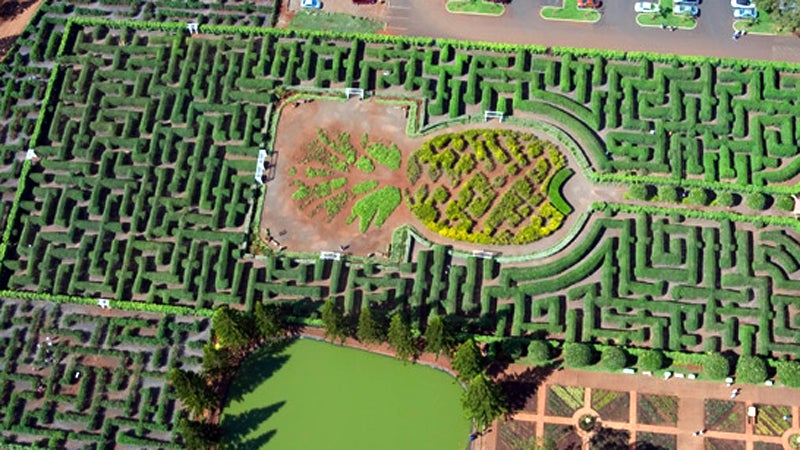 In 2008, the Dole Plantation Pineapple Maze was dubbed the largest on earth at over three acres and two-and-a-half miles of paths. Its hedges are built with 14,000 Hawaiian plants. At the center is a giant garden in the shape of a pineapple. Those who finish fastest win a prize, and are immortalized on a sign at the maze’s entrance.