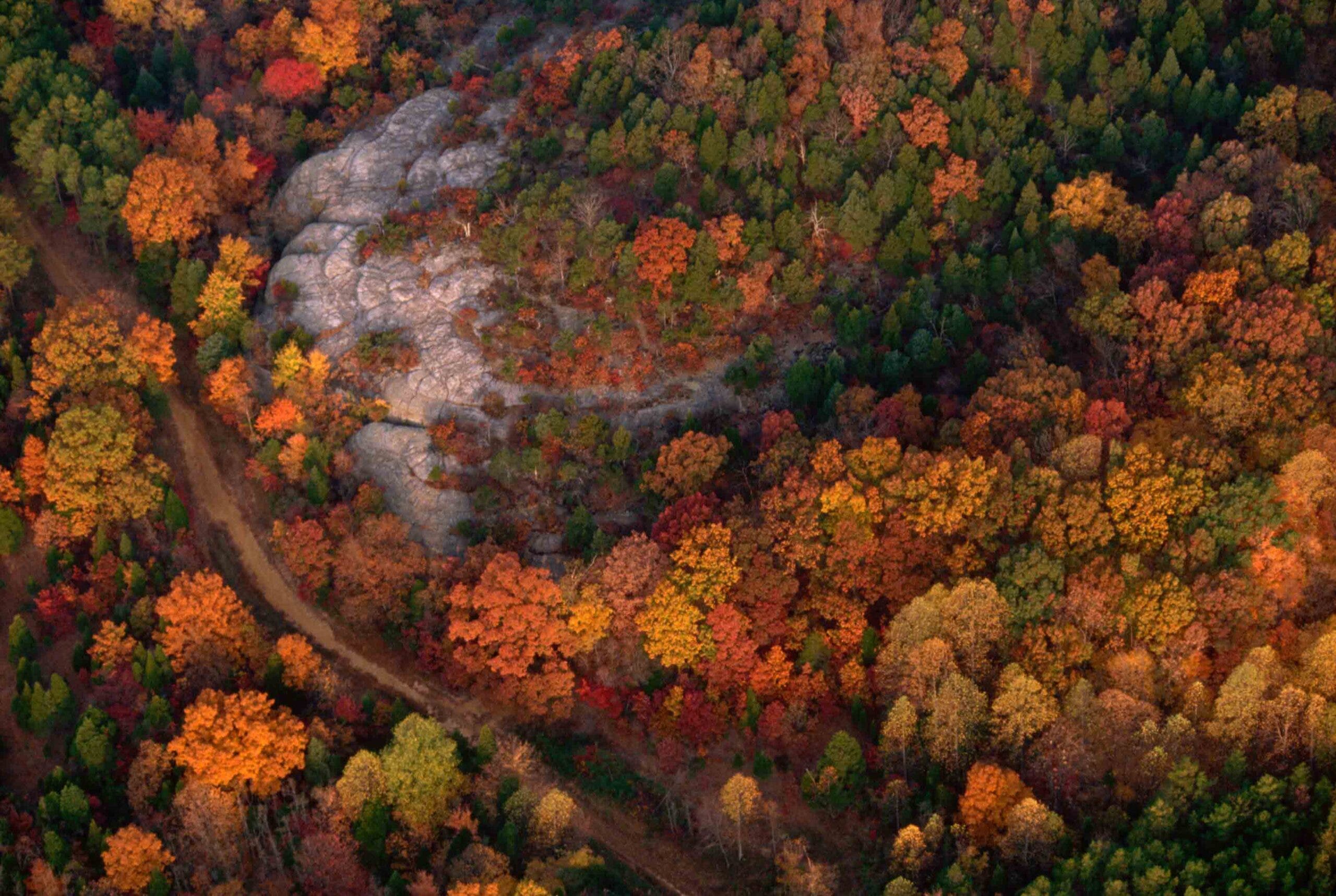 The Ozark National Forest in Central Arkansas comprises more than one million acres of oaks, sycamores, cottonwoods, and pines—that come to life every October.