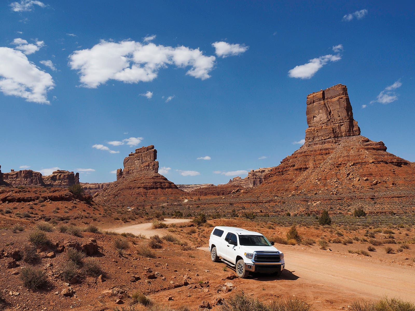 Valley of the Gods Road near Mexican Hat, Utah, is known for its dramatic red-rock towers and wide-open spaces. It’s one of the best beginner overland routes in the country because you get to access incredible vistas and hikes and are never very far from a paved road and gas station. There are also plenty of incredible but easy-to-access backcountry campsites.