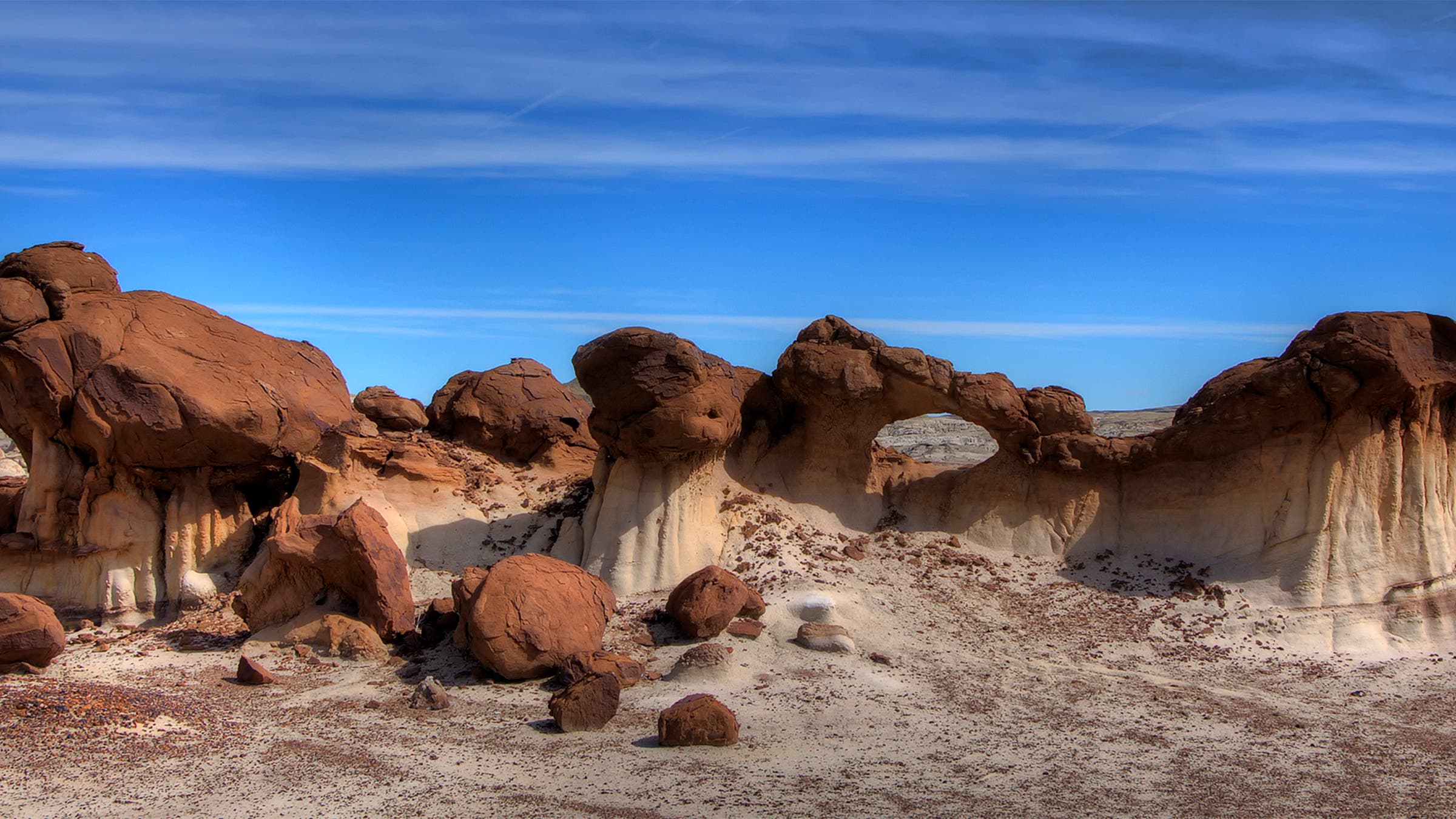 Hiking through Bisti/De-Na-Zin Wilderness is like trekking on another planet. Surreal hoodoos and mind-blowing rock sculptures soar above stark sandstone, shale, and coal landscapes—once covered by ancient sea. Marked routes are limited; the 0.75-mile route from De-Na-Zin trailhead is the prime portal into the area’s 43,420 desert acres.