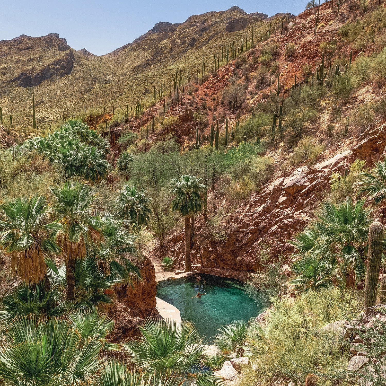 The world starts to fade away on the dirt road to this resort an hour north of Phoenix. As you make your way down it, you’ll pass wild burros and saguaros and catch views of the jagged Bradshaw Mountains. Once you arrive at the 1,100-acre property, you’ve headed back in time. Native tribes sought out these springs for centuries. Since Castle’s inception in 1896, notable guests have included Theodore Roosevelt and JFK, who convalesced here with other veterans after World War II. The draws? Warm weather, a remote retreat from daily life, and three natural hot-spring pools of varying temperatures, whose mineral contents—magnesium, lithium, and bicarbonate, among others—are still popular with those eager to soak up health benefits. Parts of the original resort burned down in 1976, but Cindy and Mike Watts bought it in 2014 and began the process of restoring it. Today the main lodge, housing the Harvest restaurant and a small bar, is reminiscent of the past, while 30 new stand-alone bungalows and cabins, all of them with mountain views, welcome the future. There are activities by the hour, such as guided canyon hikes, e-bike rides, a via ferrata, and yoga. Or do what most guests do: chill out. (The Wi-Fi password, fittingly, is RUsureUwant2?.) A perfect day looks like this: Wake up and soak in the springs. Head to breakfast, and follow that with a hike up Salvation Peak. Return in time for lunch on the restaurant’s patio, then retreat to your room to nap or read on the porch. Late afternoon, soak in the springs again before a massage treatment. Soon enough it’s time for dinner. The food is delicious and healthy—as many of the ingredients as possible are grown on-site—but you can also get a bison burger and fries. You will leave nourished and refreshed. Recent additions include Sleep Retreats, with an expert to coach you on getting better rest. Castle is a splurge, but the price includes meals, gratuities, and many activities. From $1,575 for two people —M.T.