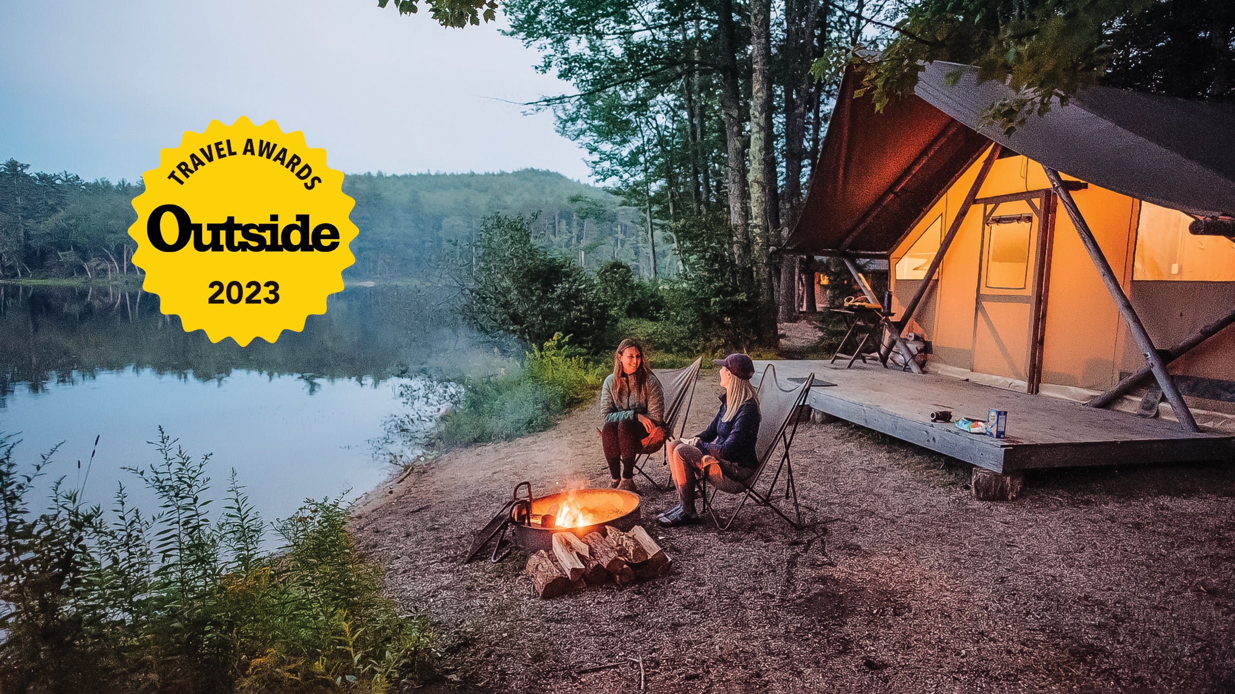 At this outpost in the White Mountains, fully furnished canvas tents are scattered throughout a 50-acre forest, complete with its own 68-acre lake and heated saltwater pool. Huttopia also offers a gathering area with fire pits, tables, chairs, and flatbread pizza served from a retro Airstream. Each tent has its own kitchen, bathroom, deck, fire pit, and electricity, or you can upgrade to a tiny home or chalet. Either way you’ll be able to swim, paddle, or fish Huttopia’s Iona Lake during the day and enjoy live performances by magicians and acoustic artists at night. The resort goes out of its way to welcome kids, with organized activities like treasure hunts and craft time. Venture off-site to hike 6,288-foot Mount Washington, tube the lazy Saco River, or pedal the 35-mile Kancamagus Scenic Byway, which curves through the heart of White Mountain National Forest. And it’s all just two and a half hours from Boston. From $88 —Graham Averill