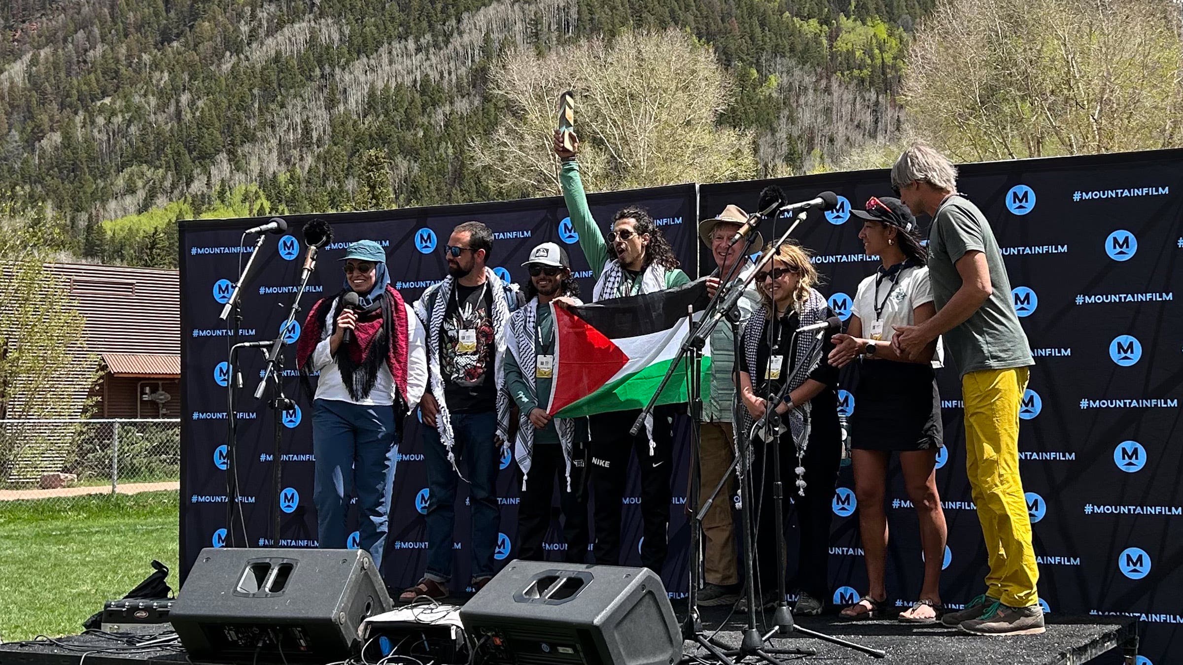 This past May I arrived in Telluride in a new job at Outside and with a new team of coworkers. But some things were the same, like looking up from the streets in town and seeing the waterfall moving from two miles away. Among my crew, I was not the first to arrive, but I was the last to leave. I walked down to the final awards ceremony in the Town Park, and watched my friend and long-ago intern (at Rock and Ice magazine) Andrew Bisharat take the stage with four Palestinian climber friends, in the U.S. on miraculous visas, as their resonant film Resistance Climbing won the Charlie Fowler Best Adventure Film memorial award. Through a Mountainfilm-Telluride Academy partnership, youth from Navajo Preparatory School, Telluride High School, and Nucla High School named the powerful Full Circle as their Student Choice Award, announced by Makayla Yazzie from Navajo Prep and Akymia Ralstin of Nucla.