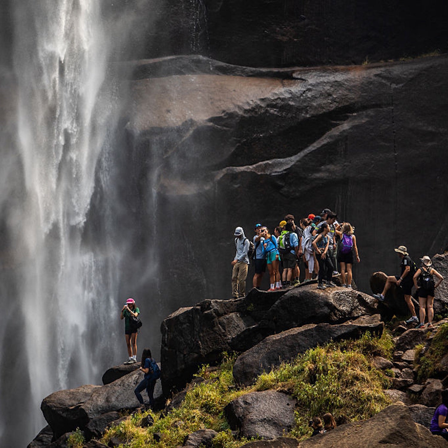 Vernal Fall, like countless sights in Yosemite Valley, evokes a sentiment a friend once expressed, that the abundance of “unnecessary beauty” in the world led him to believe there must be a higher power. Even thronged by hikers, the fall inspires awe, a flawless sheet of water pouring over a granite cliff, exhaling a rainbow where it meets the river.