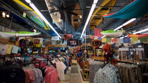 “I love that I rode to work with my dog today, and he’s laying on the floor beside me right now,” Lewis said. “I love that I’m wearing a Rusted Moon T-shirt, not tucked in, and a pair of flip flops, and that’s okay. I love that if a customer comes in today and is on the fence about a kayak they may or may not want, I can say, ‘Hey, I’m going to go bounce out with this guy and paddle for half an hour, ’cause I can. It’s good for us, the customer, and my emotional well-being as a human.”