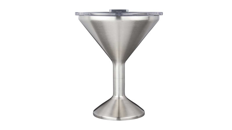 The fun Orca Stainless Steel Chasertini keeps an eight-ounce cocktail frosty long into the night, and the clear lid prevents spills.