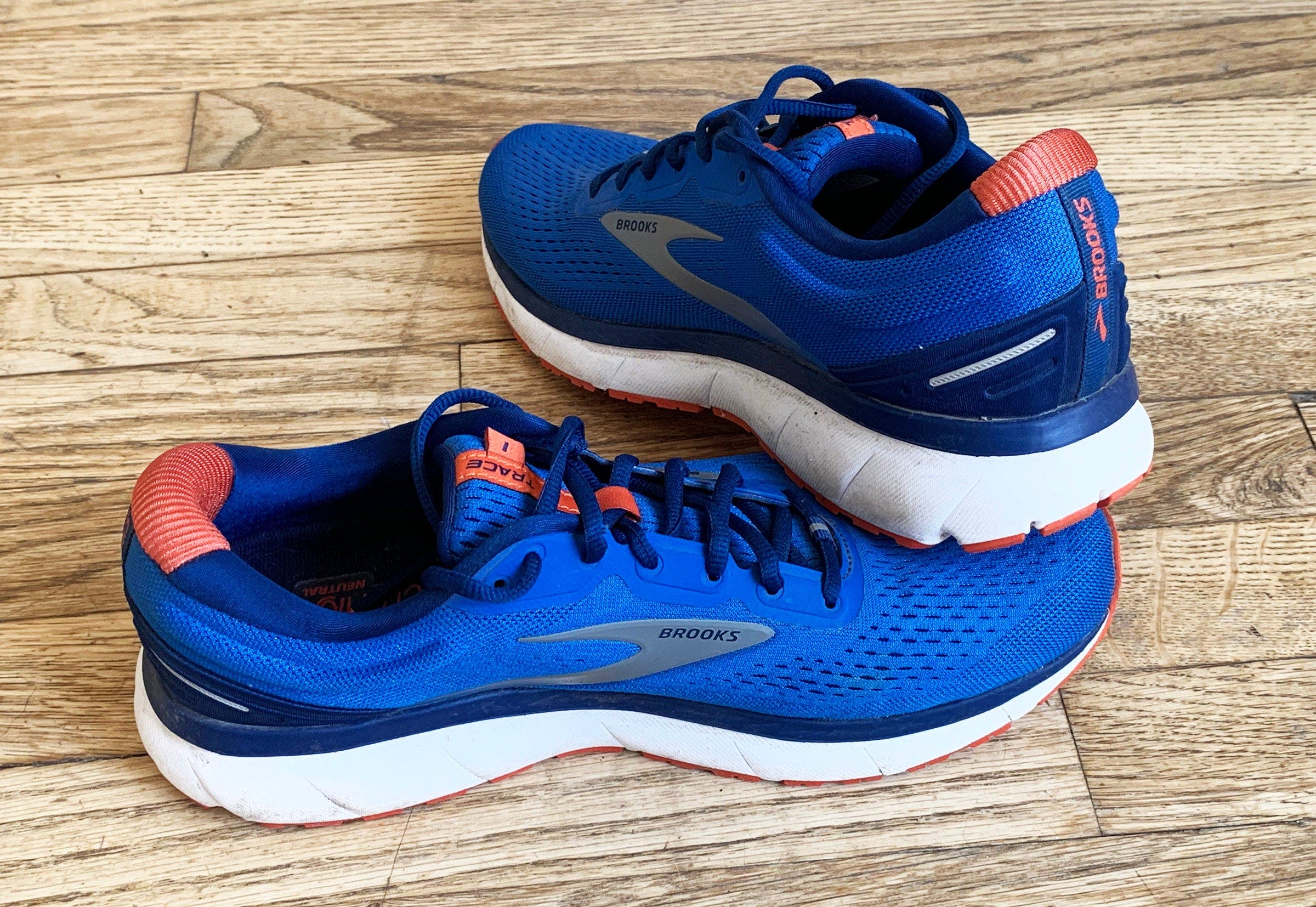 The Trace’s midsole is the shoe’s highlight. It is a single layer of soft, bouncy, flexible BioMoGo DNA “adaptive cushioning” foam that Brooks boasts as adjusting to speed, stride and weight, while deflecting impact away from your body. The feel is somewhat minimal with plenty of ground proprioception, especially in the forefoot. Yet it didn’t come across as sparse or harsh to our test team. The geometry of a non-rockered, flexible forefoot was also somewhat retro in this age of stiff rockers. The midsole flexes on touchdown, creating smooth landings and transitions, and then provides a stable platform under the ball that flexes with your foot as it rolls over it.”