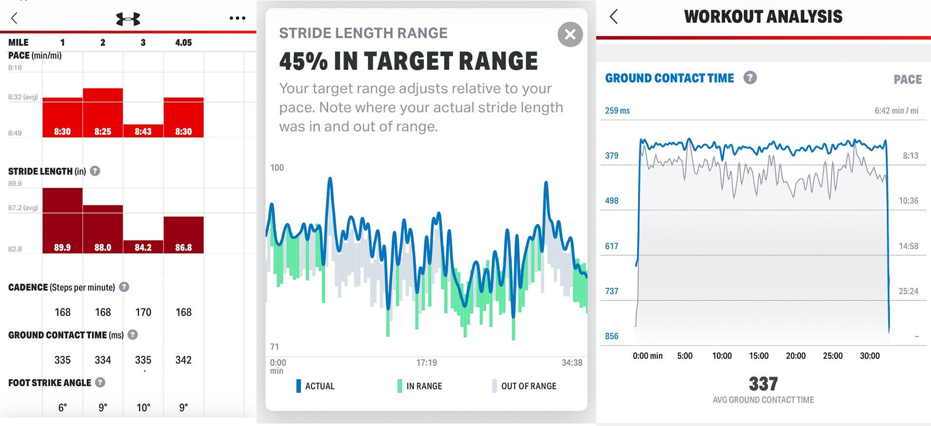 The run tech also provides foot strike angle and ground contact time, offered in a post-run analysis, which is especially useful showing how your form changes, such as when it breaks down due to fatigue on longer runs. These features are available through UA’s MapMyRun, part of the world’s largest digital health and fitness community of 270 million users.