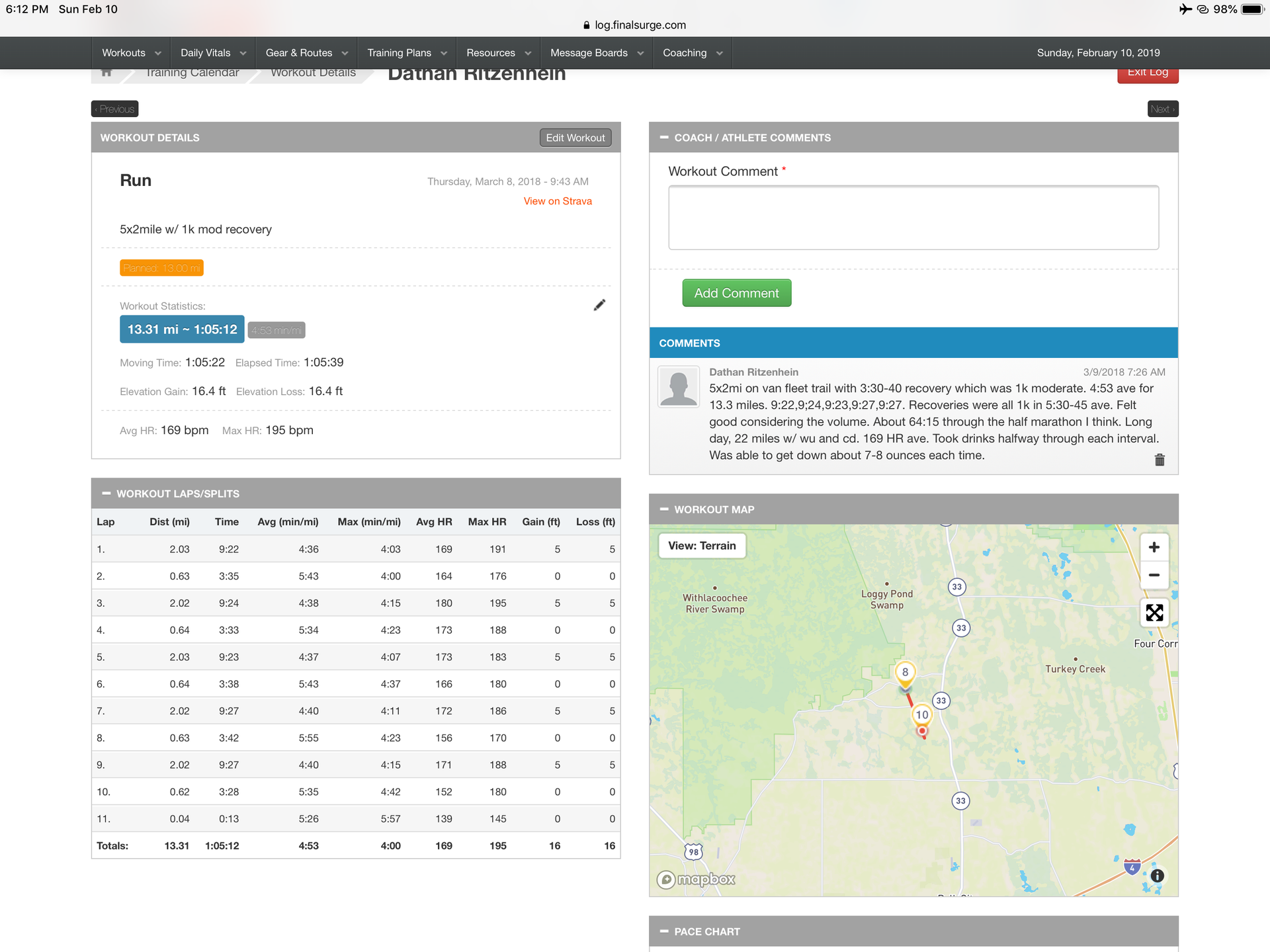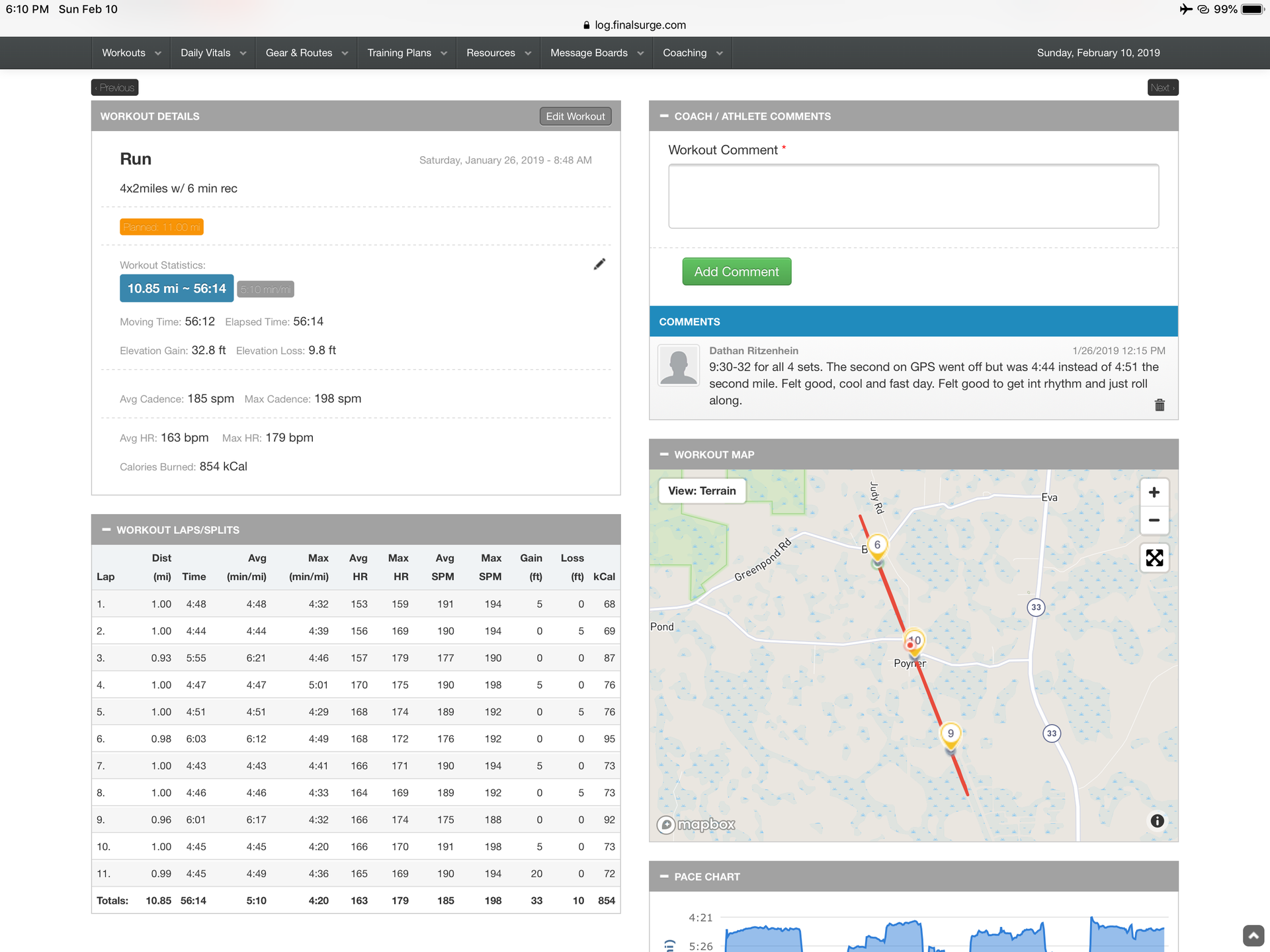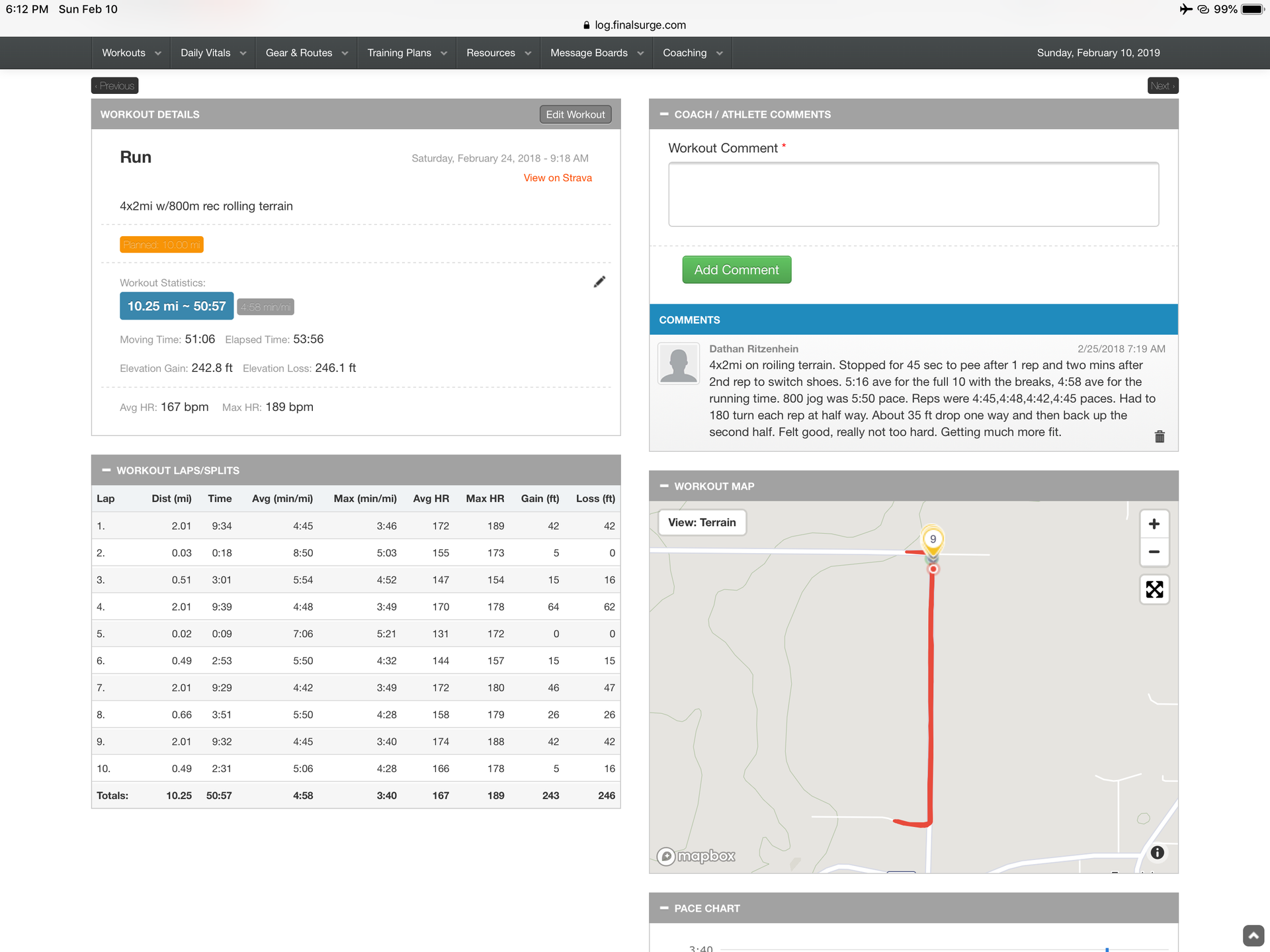 Here is another session I ran shortly before that workout last year. It is 4 x 2 miles at around 4:45 average on a much