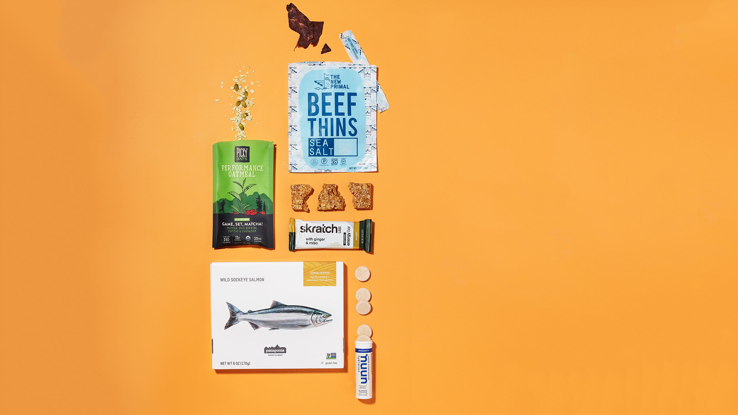 Burned out on energy “food”? Let Skratch Labs set you straight. These pre-workout ginger miso bars are refreshingly light, featuring a blend of candied ginger, soy sauce, and red pepper flakes. Sweet teeth, look away: each bar has just three grams of sugar.