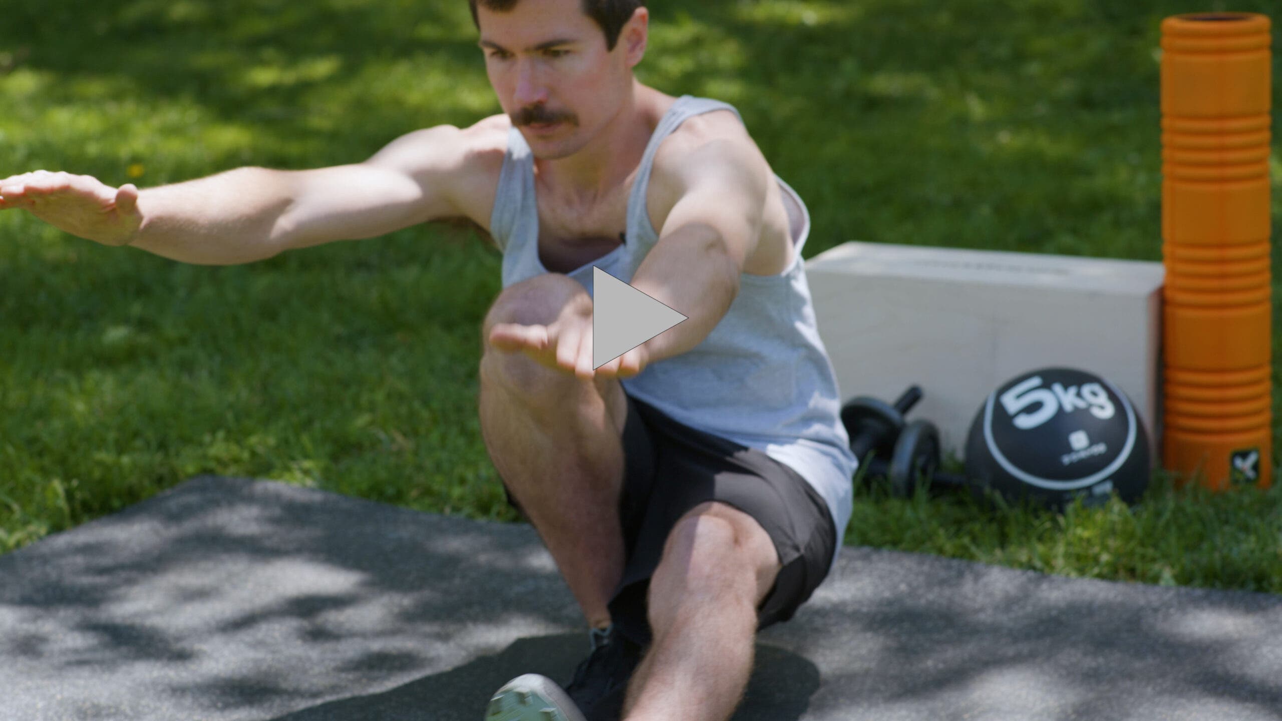 How to do it: Stand on one foot, and lower into a squat. Continue all the way to the bottom of the squat (when your butt touches or nearly touches your heel), slowly and in control, then gently roll onto your back. Roll forward, and carry your momentum to come back up onto your foot and stand up for one repetition. Complete all reps on one leg, then switch to the other.