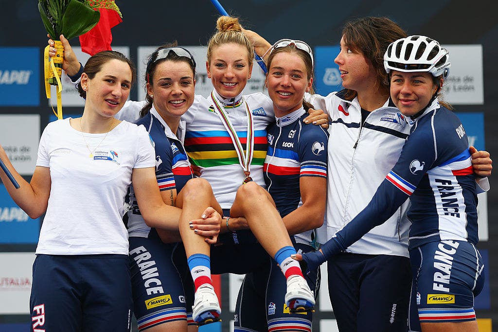 In 2014 and 2015, when she was just 23 years old, PFP won the elite world championships for road cycling, mountain biking, and cyclocross in a 12-month span.