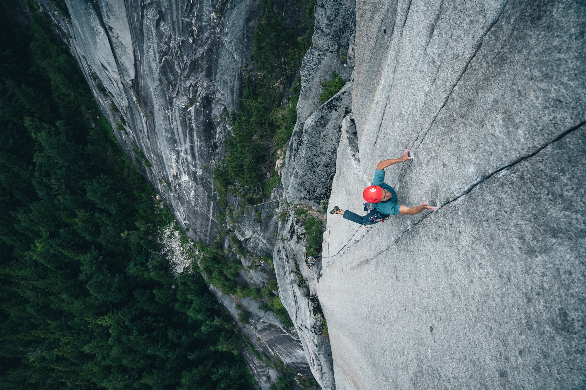 This past summer, Herson recorded the first-ever ascent of a vertical slab of granite outside of Squamish, British Columbia, called Drifter’s Escape. The route is about halfway up a very famous 3,000-foot granite dome called Stawamus Chief, which, over the years, has been a proving ground for the world’s best rock climbers.