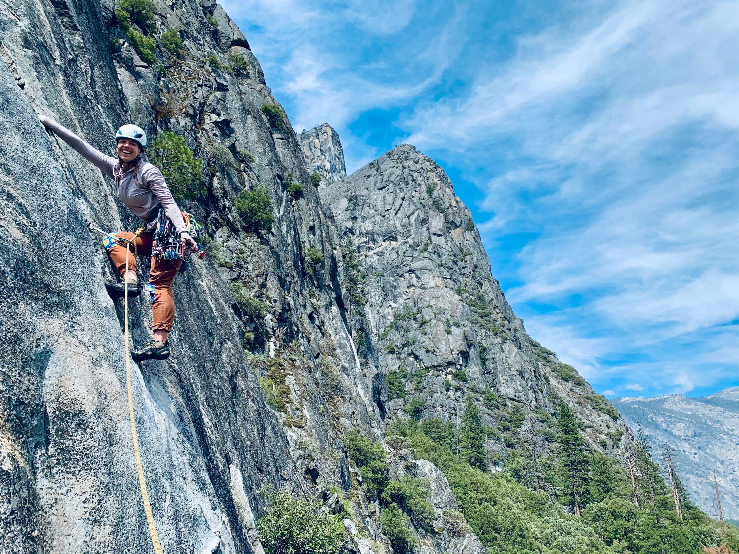 “I brought everything I had,” she says. “The crack was fists to fours, and then it was all chossy and awful, and then it got so wide I didn’t have any gear for it.” Still, she kept going, fighting through off-width sections and a narrow squeeze chimney toward a thinner crack at the top.