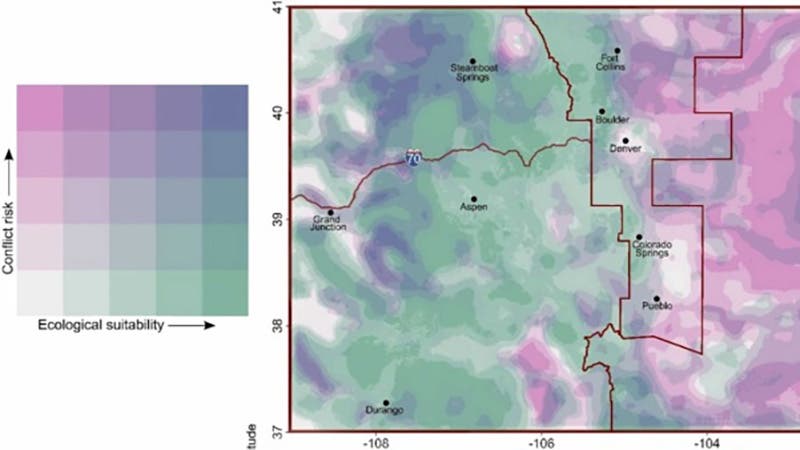 Mark Ditmer, the lead author on Colorado’s wolf study, tells Outside that the research provides an unprecedented level of data on wolf tolerance. His approach in modeling areas suitable for wolf reintroduction could then be incredibly simple. He mapped out areas capable of naturally supporting wolf populations, then cross referenced them with voting results.