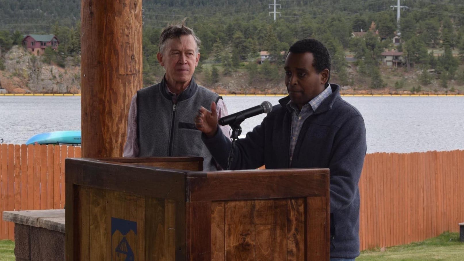 On Wednesday, May 28, Colorado Senator John Hickenlooper stood alongside state congressman John Neguse near the entrance to Rocky Mountain National Park. The two lawmakers spoke about the ongoing fight to protect public lands and the federal agencies that oversee them.