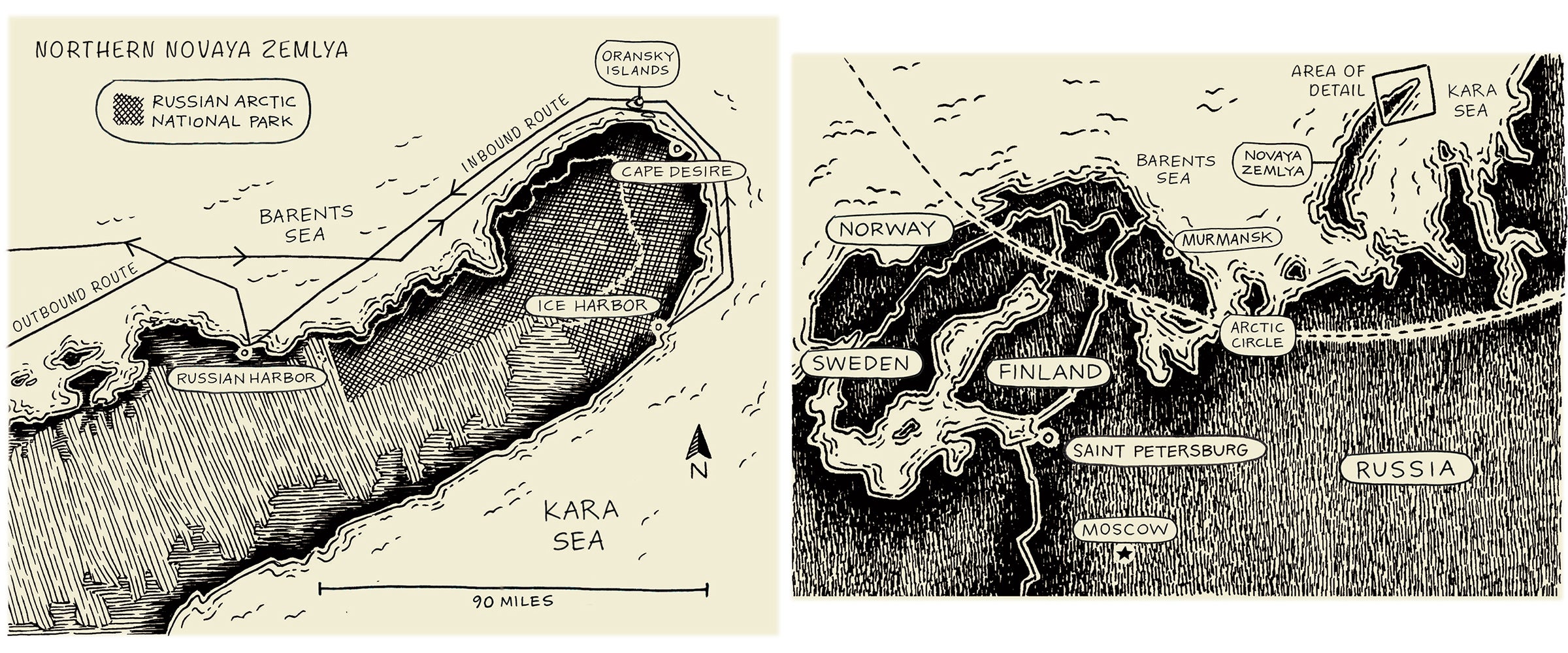 I’ve come to Russia at age 51 to re-create parts of William Barents’s third voyage to the Arctic from 400 years ago. Crossing and recrossing the sea northeast of Scandinavia, Barents, a Dutch navigator, went looking for a passage to China, but he and 16 men were trapped by sea ice during the summer of 1596. For nearly a year, they were stranded hundreds of miles above the mainland on Novaya Zemlya, a pair of large islands extending all the way to 77 degrees north. Five sailors died, including Barents himself, who perished at sea after they abandoned their ship and he and the remaining crew tried to get home on small boats. His quest to find the lucrative route to China was a brave but dismal failure.
