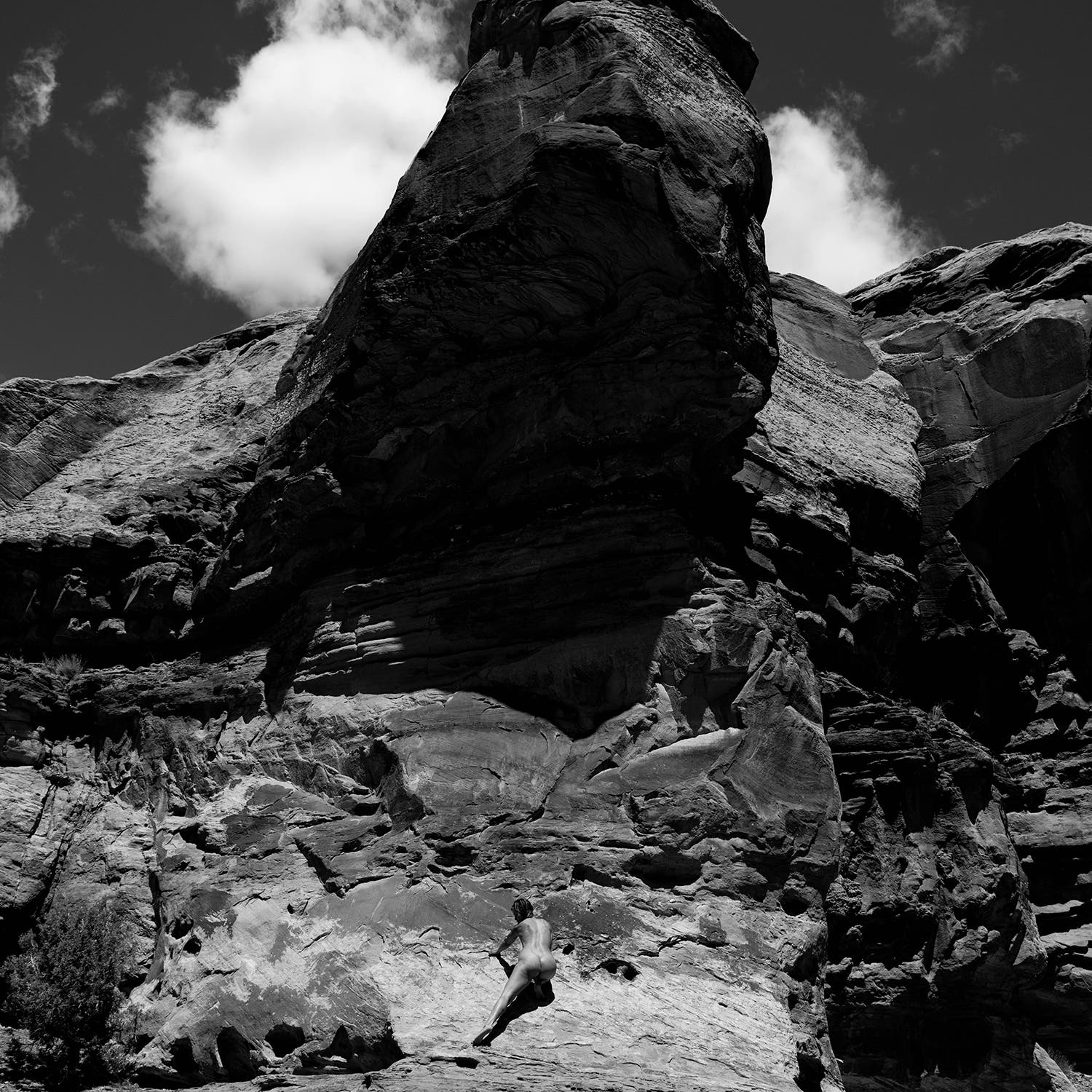 Something rattles under the hood. For a moment, I hope it’ll go away if I ignore it, but the sound is so annoying that I pull over. Lying flat on the heated pavement, I examine my car’s underbelly. A piece of plastic is lodged somewhere it’s not supposed to be. I use my knife to set it free. The disruption leaves my front bumper dislodged like a broken jaw. I grab a roll of duct tape and re-affix it as best I can, hearing my twin brother warn me about how being cheap keeps you poor. I smack the bumper, tell my car I love her, and promise to find a better solution once I get to Moab.