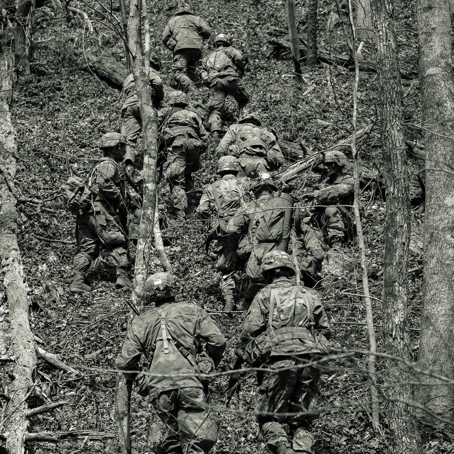 There was no visibility—the moon was entirely covered—and my night vision optics weren’t working well. I literally couldn’t see my hands in front of my face. People were falling all over the place. Once I fell down a slope and as I was lying there I could feel something moving under me. Turns out I had fallen on top of someone else, and the movement was his breathing. It was so dark I couldn’t see him, and he was so dazed he didn’t even say anything. People were walking into trees, tripping over rocks, falling down hills.