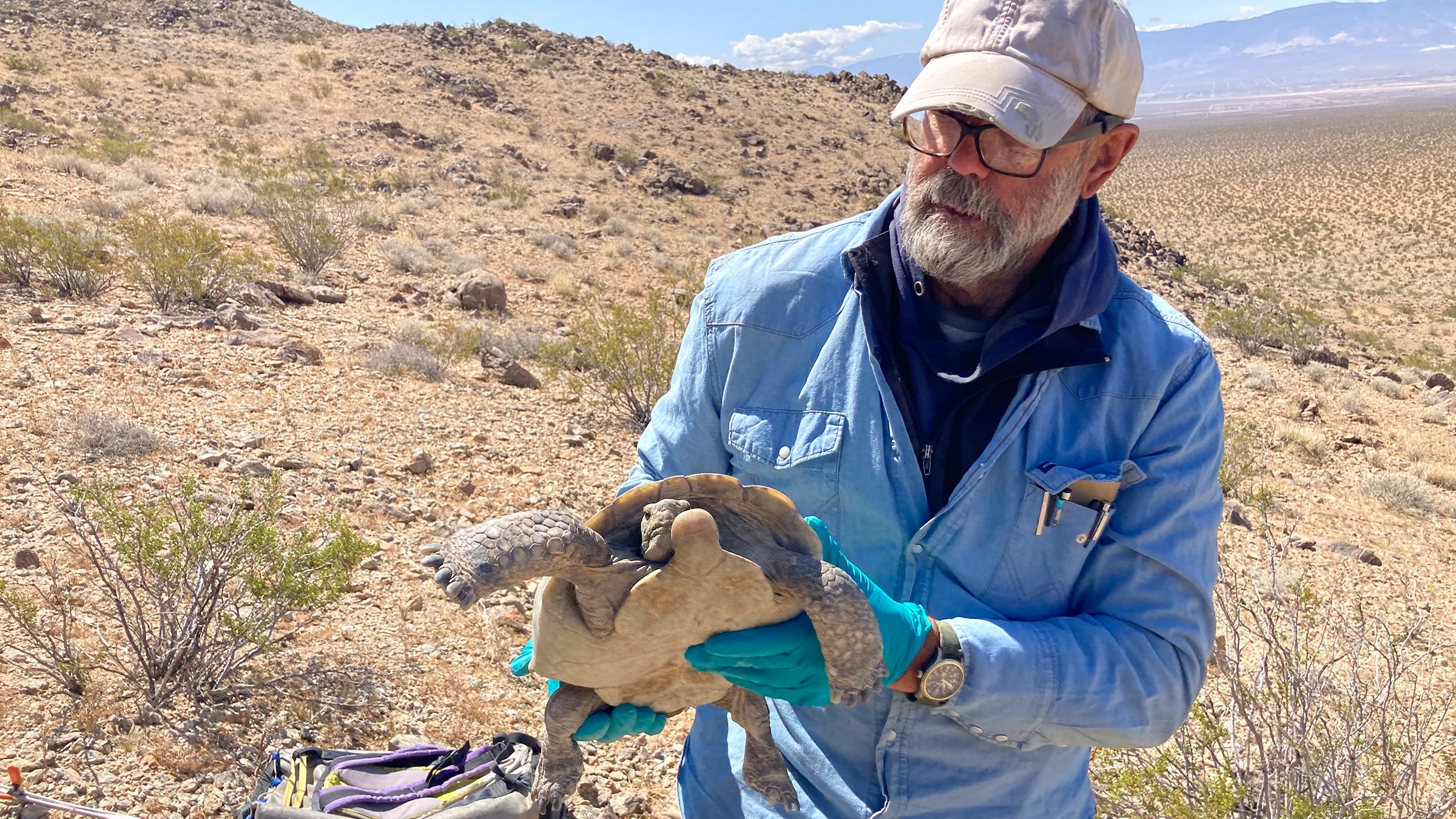 Another desert tortoise conservationist, Tim Shields, who estimated that he’d logged 35,000 miles on foot in more than 45 years, felt a sort of spiritual apprenticeship with the animal. “My career has been the discovery of this earthling that has figured out how to survive,” he said, noting that the species has been around for as long as 20 million years. “I mean, a desert tortoise has seven ways to drink rainwater that I’ve witnessed in the field. We have this lesson to learn, that we can give to other earthlings.” (For the record, those seven ways include snorting up drops that they collect on their shells, snorting water off their forelegs, and eating wet mud.)