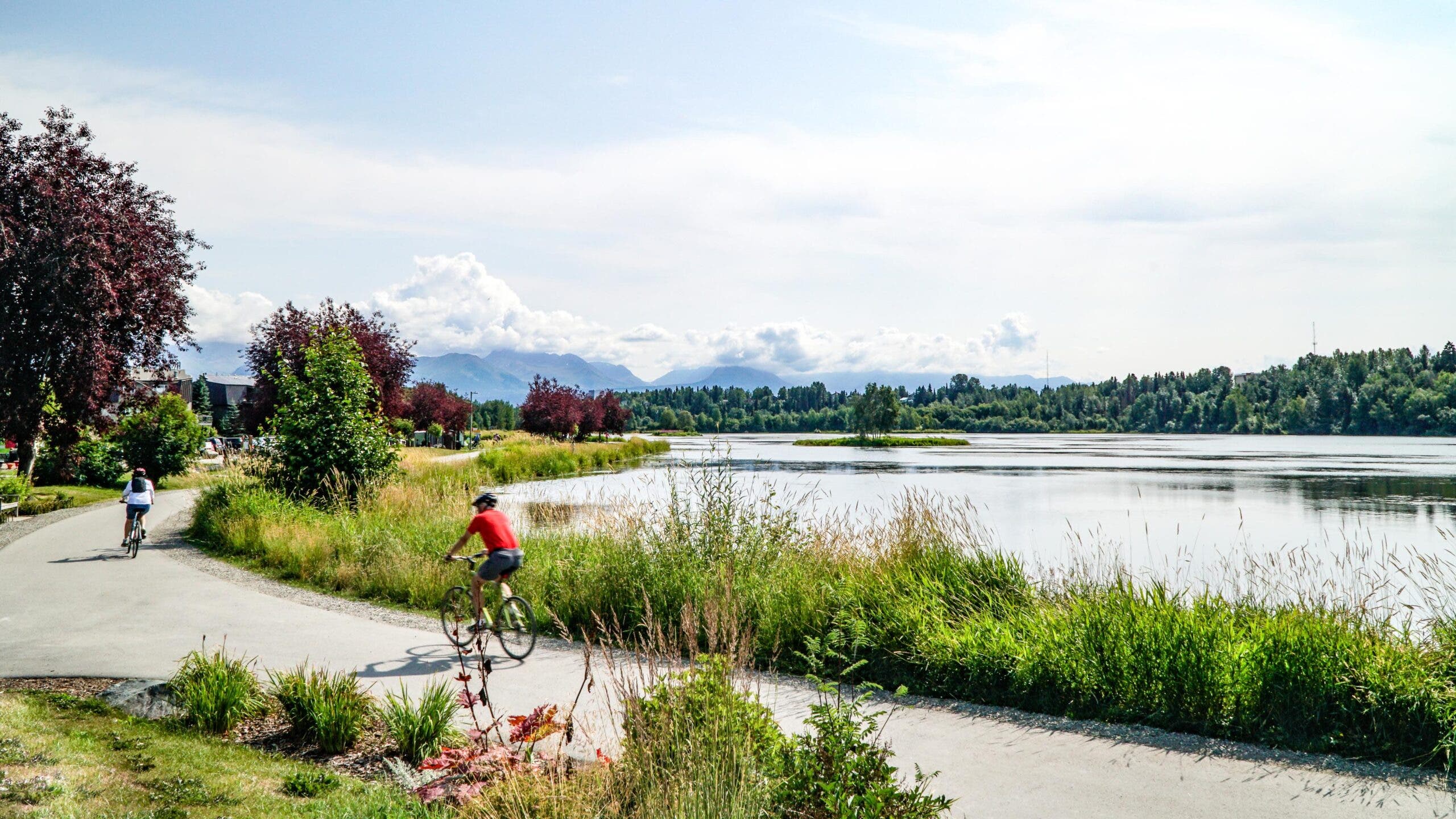 Anchorage is blessed with several brilliant networks of singletrack trails that serve an exploding mountain bike scene. Two fat-tire favorites, Kincaid and Hillside, boast 19 and 15 miles, respectively. “Kincaid has great flow trails, really well maintained,” says Dan Oberlatz, whose Alaska Alpine Adventures guides wilderness trips statewide. “The lower Hillside trails are absolutely incredible—a little more aggressive enduro riding with long climbs and descents.” The trails are also favorites with local trail runners and hikers.