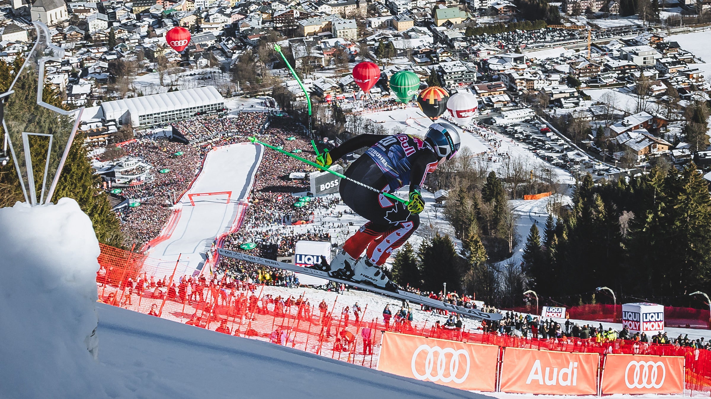 Built like a bullet at 5-foot-8 and 180 pounds, Crawford, who goes by “Jack,” maintained his tuck down the rest of the Streif, arcing and soaring and barely holding on, until he crossed the finish to raucous cheers and another green number. Subsequent racers tried but failed to top him, and Crawford won by eight one-hundredths of a second, the first Canadian victory here in 42 years. Another Canuck, Cameron Alexander, placed third, sandwiching Swiss runner-up Alexis Monney.