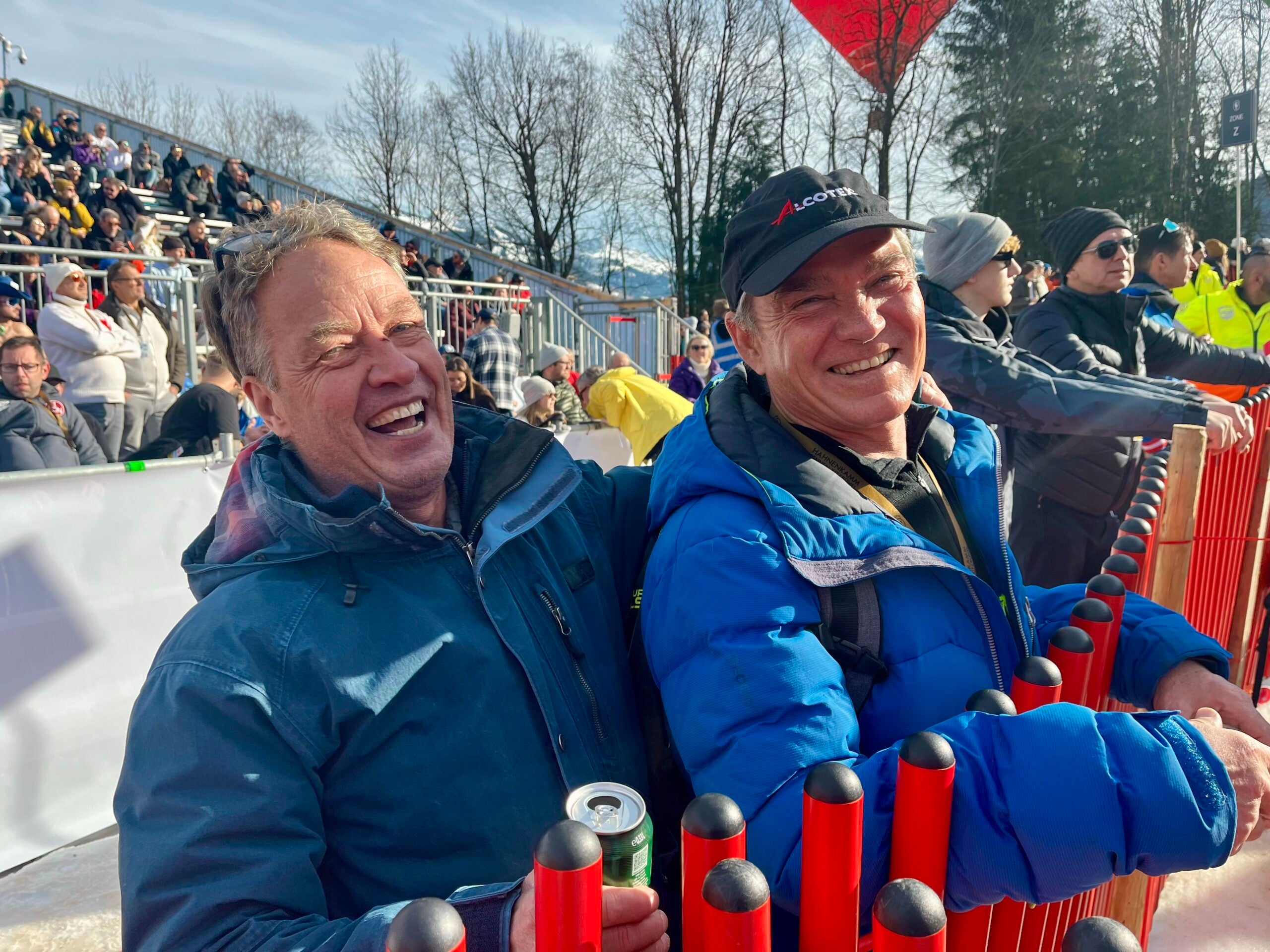 The stands were a place to be seen, like a heavyweight fight in Vegas. Attendees included ardent Hahnenkamm fan Arnold Schwarzenegger (“He’s baaaaaahhhhk,” blared the announcer when the big screen cut to Arnie’s white-bearded mug) and Swedish soccer star Zlatan Ibrahimovic, who was interviewed from the stands.