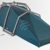 HeimPlanet’s most distinguishing feature is its use of inflatable geodesic poles. That unique design makes the tent more stable in high winds, faster to set up, and easier to repair. The poles themselves are made from a strong TPU inner tube (yes, just like in bike tires) that inflate inside a rugged polyester sleeve. To set the tent up, you just spread it out, hook up the included pump, and start blowing air: in just a few seconds, the tent will stand up on its own as you inflate it. After staking it down, no other work is required.