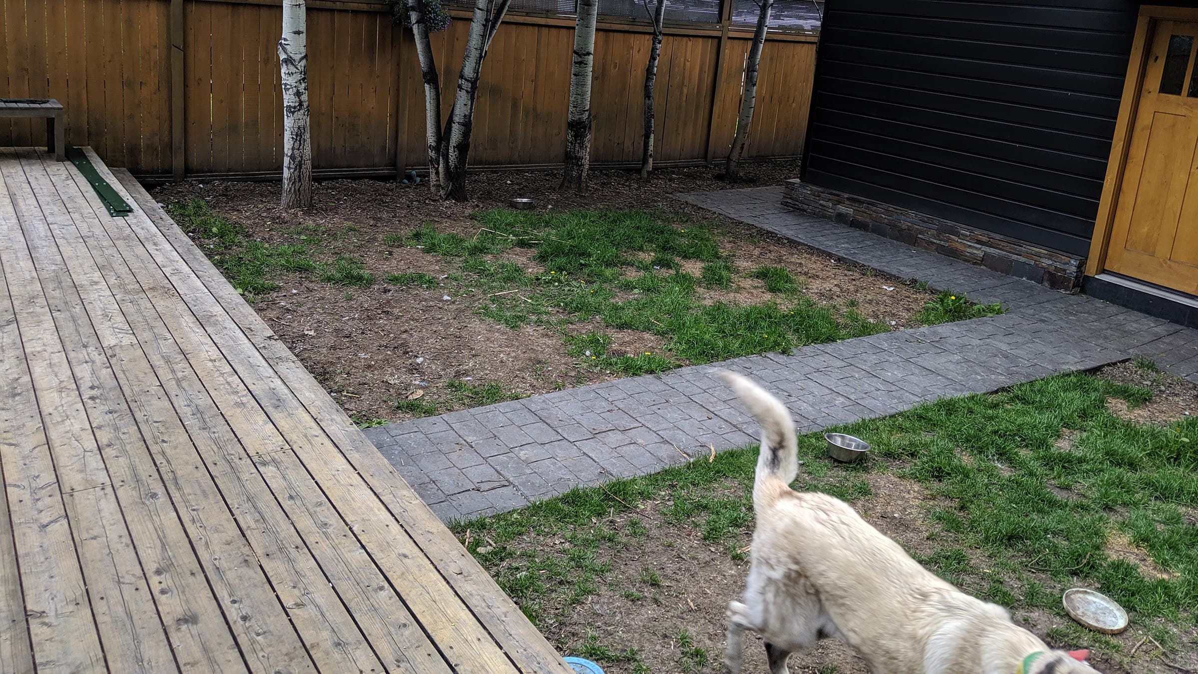 Worse still, our yard’s exposed dirt would bake into a crust during warmer, drier months, and hold onto urine, and the small remnants of poop I was unable to pick up. On hot days, it smelled like shit—literally. Hanging out on our back deck became untenable.