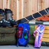 Osprey’s Transporter duffel-to-backpack convertible (on his back), Ex Officio’s Double Haul Shorts (his), Nike’s ACG Air Trigo (his), Timberland’s Trek Compactor 30 (wheeled behind him), and Victorinox Swiss Arm E-Motion 360-Degree Trek Pack Plus